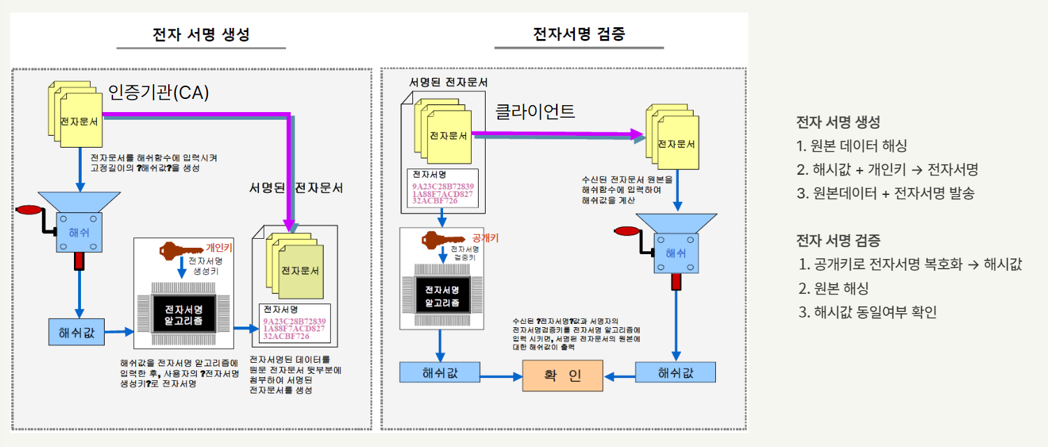 μ μμλͺ κ³Ό CAμ 곡κ°ν€λ‘ μΈμ¦μλ₯Ό Hashν κ²°κ³Ό κ°μ λΉκ΅νμ¬ κ³΅κ°ν€λ₯Ό μ μμ μ¦λͺ ν©λλ€.