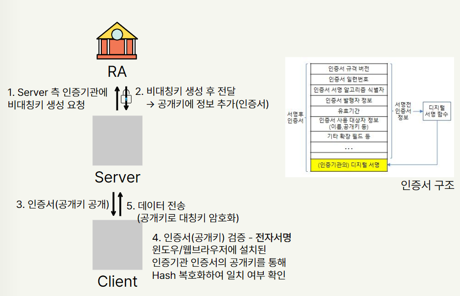 λν, μμ μ΄μΌκΈ°ν μΈμ¦μλ μλ²μΈ‘μμ λ°νμ μμ²νμ¬ μμ±λ 곡κ°ν€λ₯Ό κΈ°λ°μΌλ‘ λ§λ€μ΄μ§ μΈμ¦μμ λλ€. μ¬κΈ°μ μ°λ¦¬κ° μμ£Ό μ νλ 곡μΈμΈμ¦μλ 곡κ°ν€ λ°ν μ£Όμ²΄κ° λ°λ‘ κ°μΈμ΄ λ κ²μ μλ―Έν©λλ€. κ°μΈμ΄ 곡κ°ν€ λ°ν μμ² μ£Όμ²΄κ° λκ³ , μνμ΄ μ΄ μΈμ¦μλ₯Ό λ°νν΄μ£Όκ³ (RA), μν μμ Yessignμ΄ CAμΈ κ΅¬μ‘°λ₯Ό λ°λ‘ 곡μΈμΈμ¦μλΌκ³ ν©λλ€.